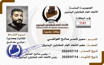 ضمن منصتنا نقدم لك فرصة استثنائية للاستفادة من مجموعة شاملة من المزايا والخدمات التي تدعم نموك ونجاحك . احصل على بطاقة عضوية الاتحاد العام للمقاولين اليمنين الان ....